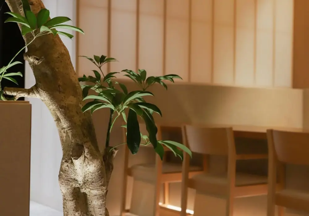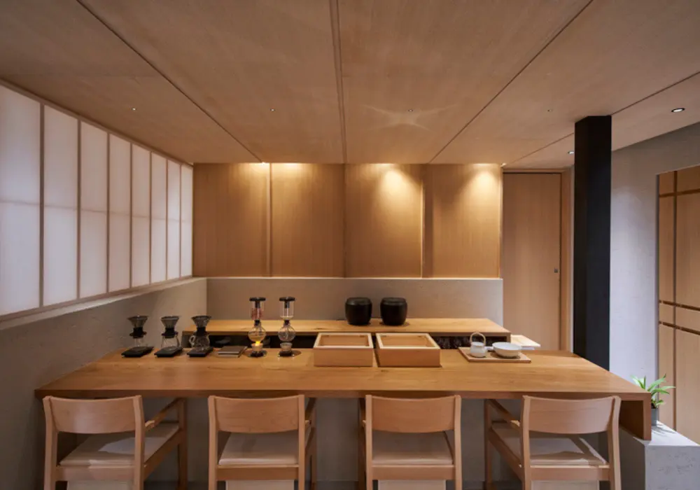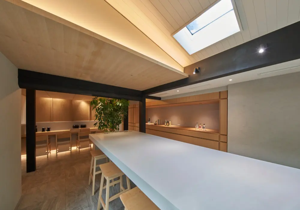 「plough」の内観は、和の趣を感じさせる温かみのある木材とモダンなデザインが融合した、洗練された空間です。